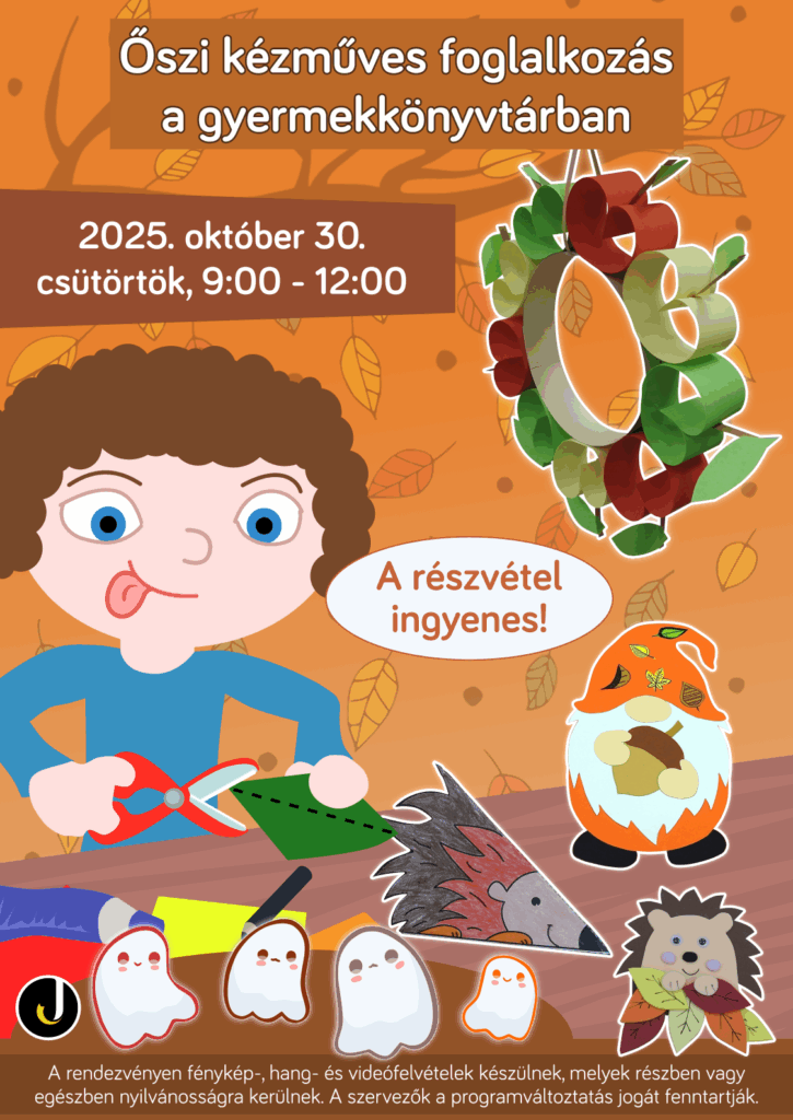 2025. október 30-án délelőtt őszi játszóház lesz a gyermekkönyvtárban. Különféle technikákkal készítünk süniket, őszi koszorút és manócska ablakdíszt.